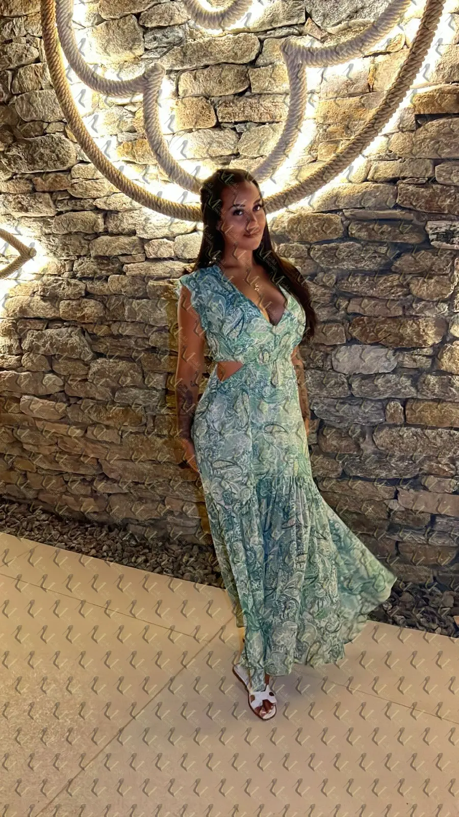 Я латиноамериканка по духу, хотя родилась и выросла в Москве. У меня тёмные волосы средней длины, которые я люблю расчесывать пальцами, пока слушаю свои любимые ритмы. Высокая — 174 см, и при этом у меня приятные формы: пышные груди размера D и естественная, слегка подвижная фигура. На правой груди у меня небольшая татуировка в виде волны, которая напоминает о моих летних путешествиях.