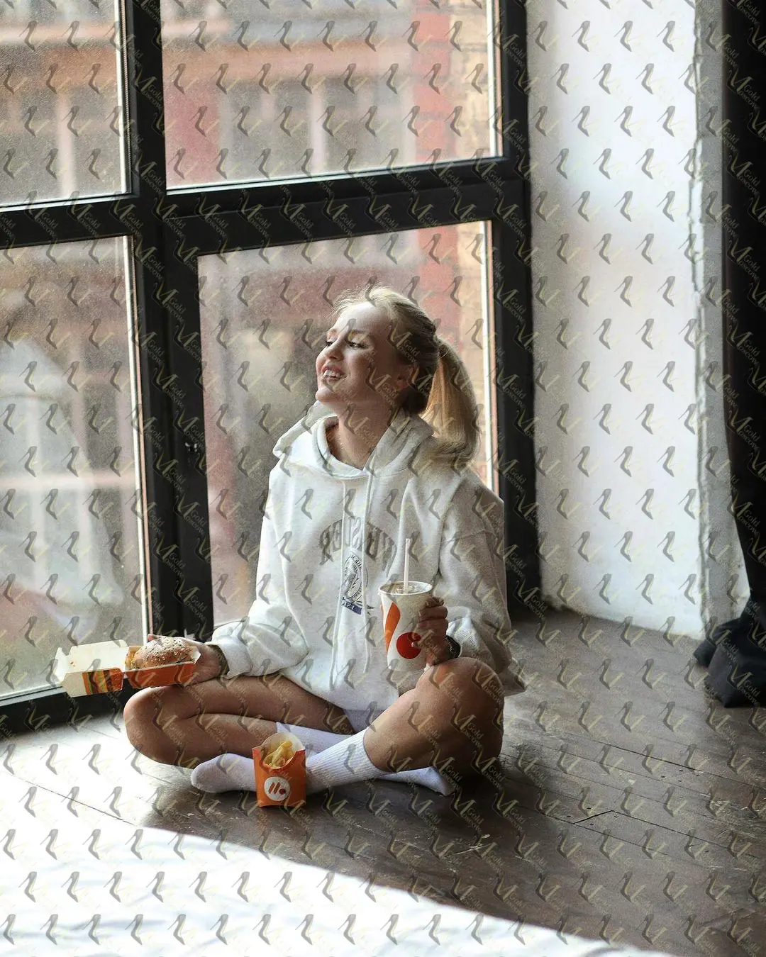 Я — фигуристая блондинка с ростом 175 см и весом 55 кг, поэтому легко вписываюсь в любой интерьер, будь то уютный лофт в центре Москвы или уютный уголок в отеле. У меня средняя длина волос, которые я часто играю пальцами, когда думаю о твоём голосе. На правой бедре есть небольшой, но милый тату, который я люблю показывать в лёгком платье.